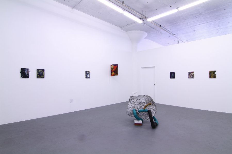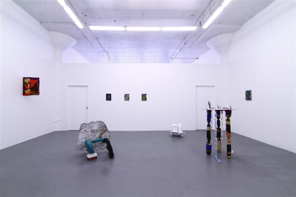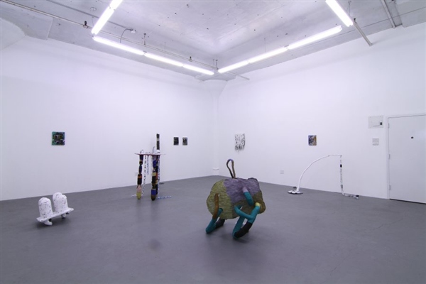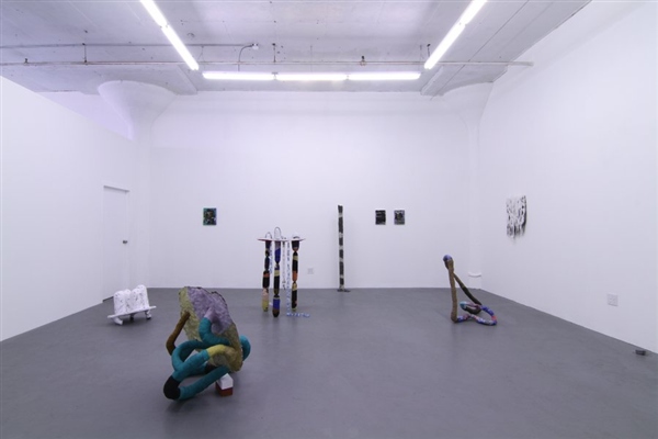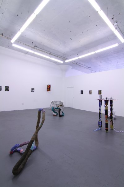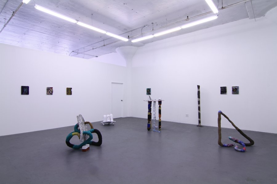 Background: Yui Kugimiya Untitled (On a Cloudy Day) and Untitled (In a Forrest) 2010 Acrylic and yarn on canvas 9 x 12 in.