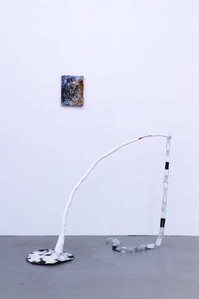 Arbitrary, Decorative and Untrustworthy 2009 Linen, acrylic polymer, pigment, acrylic paint, aluminum, steel, strips of polymer 53 x 30 x 31 in.