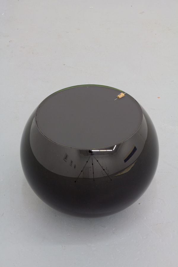 Joe Brittain, Ocean and Boat, 2011, glass, ink, cork, and magnetized needle, 13 x 15 x 15 inches