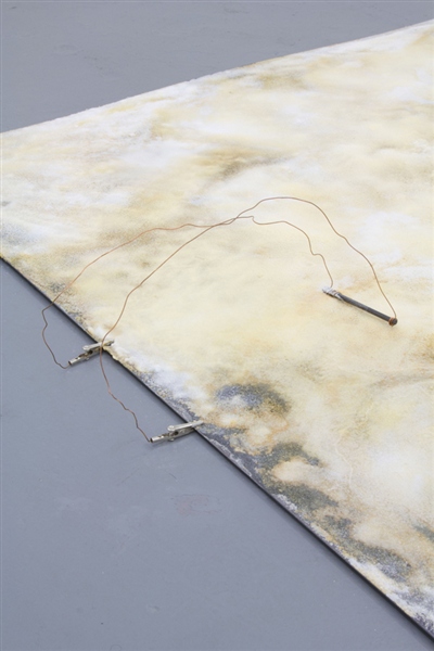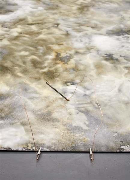 Joe Brittain, No diminution in the sum of things (detail), 2011, steel salt, coal, copper wire and graphite, 96 x 48 x 3 inches