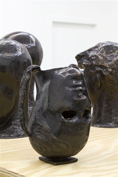 Sarah Peters's bronze portraits depict American outcasts, idealists, extremists, zealots, and visionaries. From early colonists to late 20th century religious cults, these are the believers who blindly follow conviction to extreme ends. Her heads, familiar from history but slightly strange, warp our expectations of traditional bronze busts. They are vessels for narrative, but it's left to the viewer to fill in the story. They are magnificent symbols heavy with implications, charged with touch and process, yet silent with hollow holes for eyes. Again it is the absent element that is most present, and through the absence we are invited to see.