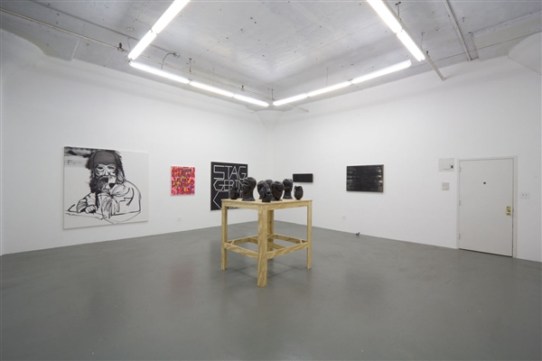Nancy Haynes explores the nature of space and light in non-representational painting. She creates hologram-like fields of color, light to dark (or dark to light), in a range that is at times almost imperceptible and monochromatic. The work is pregnant with what is unseen, unsaid, concealed but implied. Nancy speaks about the "presence of an absence." The spectre of a subject never seen is always hovering at the edge. Her reductive thinking about painting gets to an essential definition, without all the adjectives. EJ Hauser operates in multiple modes of painting unified by a poetic suspense. Phrase paintings such as "Staggering loans" and "Cock A Doodle Doo" and portraits of Walt Whitman in quick, ghostly lines purposefully leave the viewer to discern what is not there. Identity, history, awe of the written word, the passion for looking: all of these notions are present in this rich and broad painting practice Hauser has cultivated. Hinting, suggesting, and insinuating, the paintings invite us to visit with them many times. Staying with them and letting them whisper, the viewer is taken to depths of the poetic.