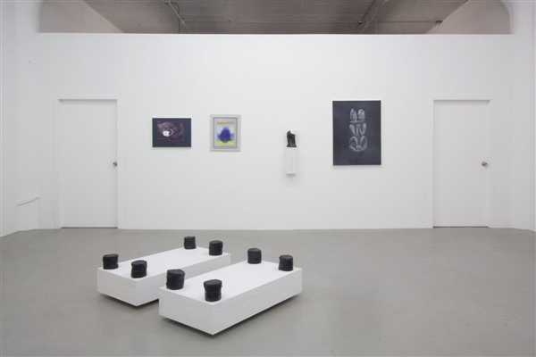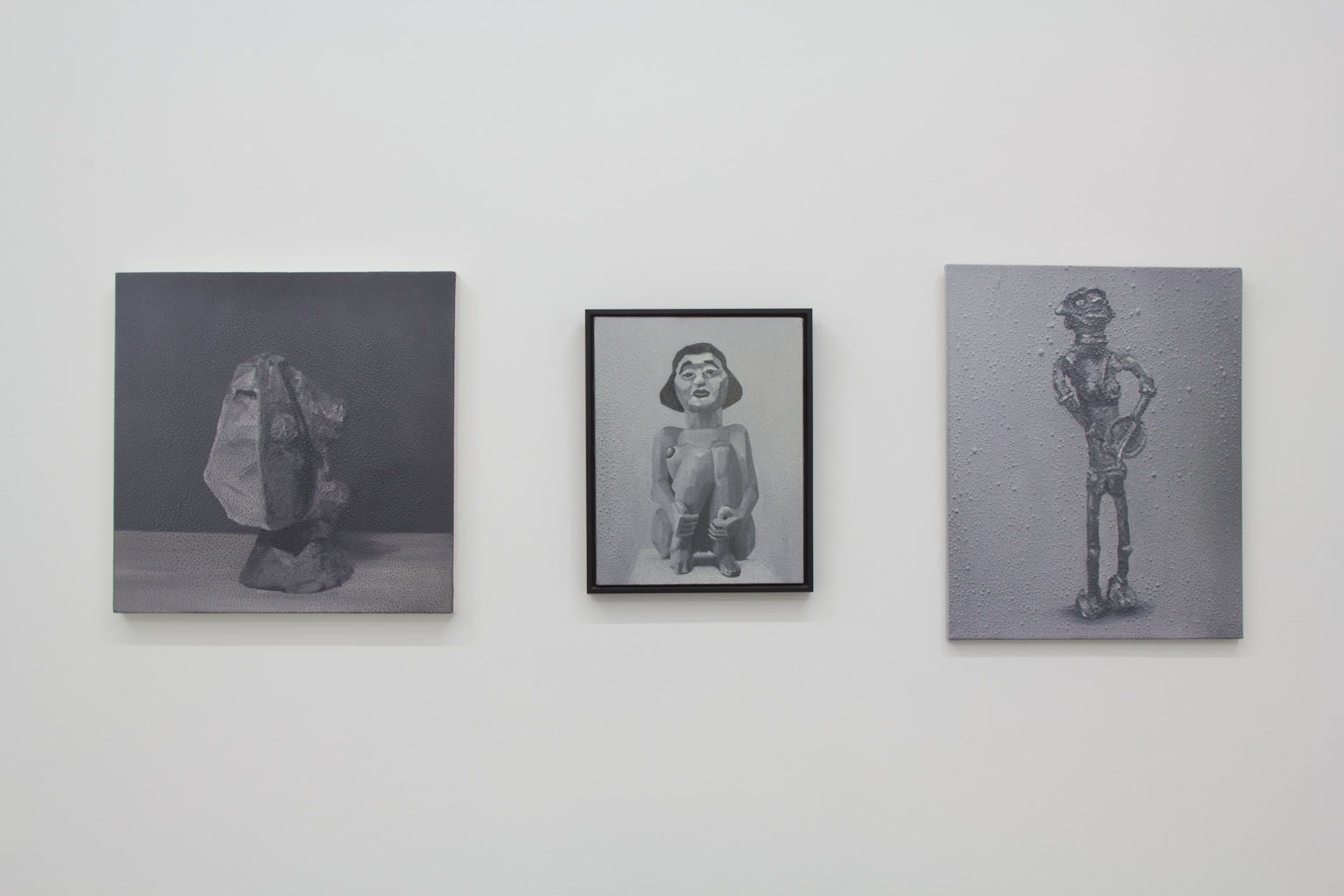 THE STUDY: MICHAEL BYRON AND STACY FISHER From muse to museological, the life of an artistic object suggests passage towards resolution, clarity, and later category, thereby demystifying the creative impulse. Michael Byron and Stacy Fisher’s objects of contemplation complicate this notion, resist easy definition, and draw power from being nearly nameable. Fisher layers paint to mask forms sculpted out of hydrocal, rendering what once might have been identifiable objects into associative ones. By placing objects that recall tools or utensils on provisionally made pedestals, platforms, and columns, her sculptures become rudimentary monuments to the abstracted everyday. Byron’s practice is manifold, allowing for both representation and abstraction in painting. Selected on the basis of the power of the subject matter, his Grisaille series renders black and white photographs of modernist sculptures and anthropological icons seemingly from the archives and inventories of a museum. Byron employs a geometric framing device in each composition that isolates intense passages of pigment, while also representing means of display. Both artists use withholding and distancing strategies through simulated and actual layers, creating theatrical tableaus for historically and psychologically charged replicas, reprints, and artifacts. Michael Byron has exhibited extensively, both nationally and internationally, with solo shows at the Aldrich Museum of Art, St. Louis Art Museum, The Suburban, Galerie Delta Rotterdam, and White Columns. He is the recipient of an NEA grant, as well as the Henry L. and Natalie E. Freund Fellowship in Painting. Byron lives and works in St. Louis, Missouri, where he is faculty at Washington University. Stacy Fisher has exhibited at Jeff Bailey Gallery, Thierry Goldberg Projects, Horton Gallery, Allegra La Viola and Daily Operation, in New York, as well as Nudashank in Baltimore, and Weekend in Los Angeles. In 2011 she had a two-person show with Gary Panter at Cleopatra’s in Brooklyn. She has received fellowships from the Edward F. Albee Foundation and The Vermont Studio Center. Fisher lives and works in Brooklyn.