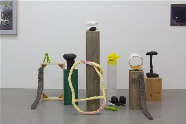 Stacy Fisher, Odds ’n Ends (7), 2012, Hydrocal, shellac, pigment, wood, spray paint, 33 x 8 x 5 inches