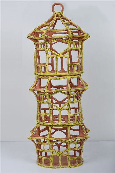 Small Tower Birdcage, 2013, glazed earthenware, 11 inches tall