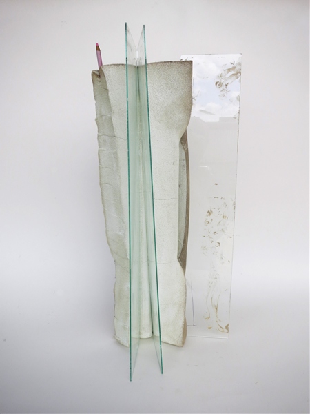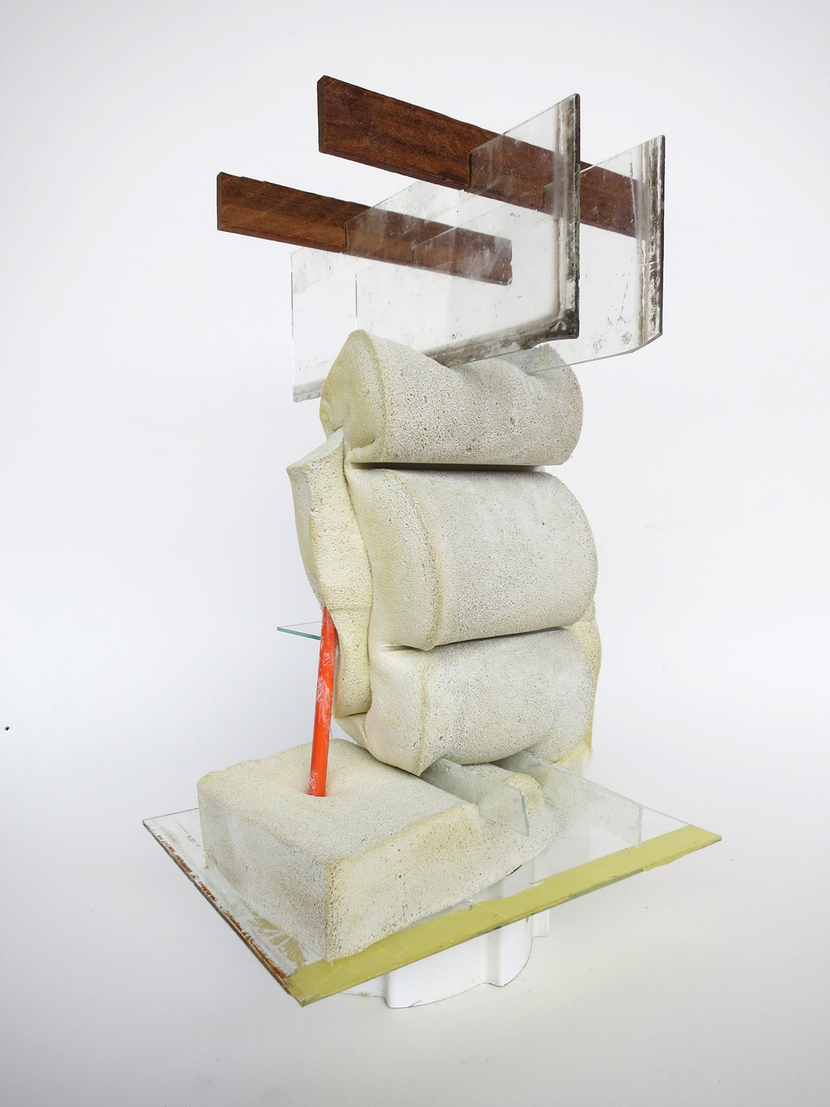 Untitled, 2014, cement, foam, glass, pigment, aluminum, pencil, 23 x 10.5 x 7 inches