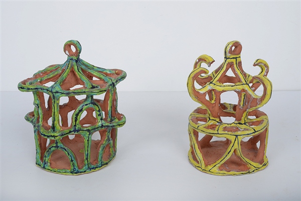 Small Lime Birdcage, 2013, glazed earthenware, 9 inches tall Small Yellow Birdcage, 2013, glazed earthenware, 8.5 inches tall