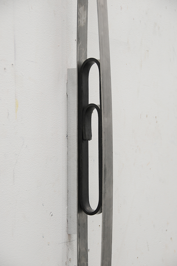 Matthew Schrader, detail of untitled (cc), 2015, steel, butyl rubber, neodymium magnets, 1.5 x 72 x 4 inches