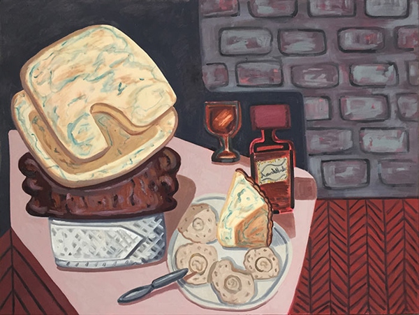 Hannah Barrett, Stilton with Accessories, 2015, oil on canvas, 36 x 48 inches