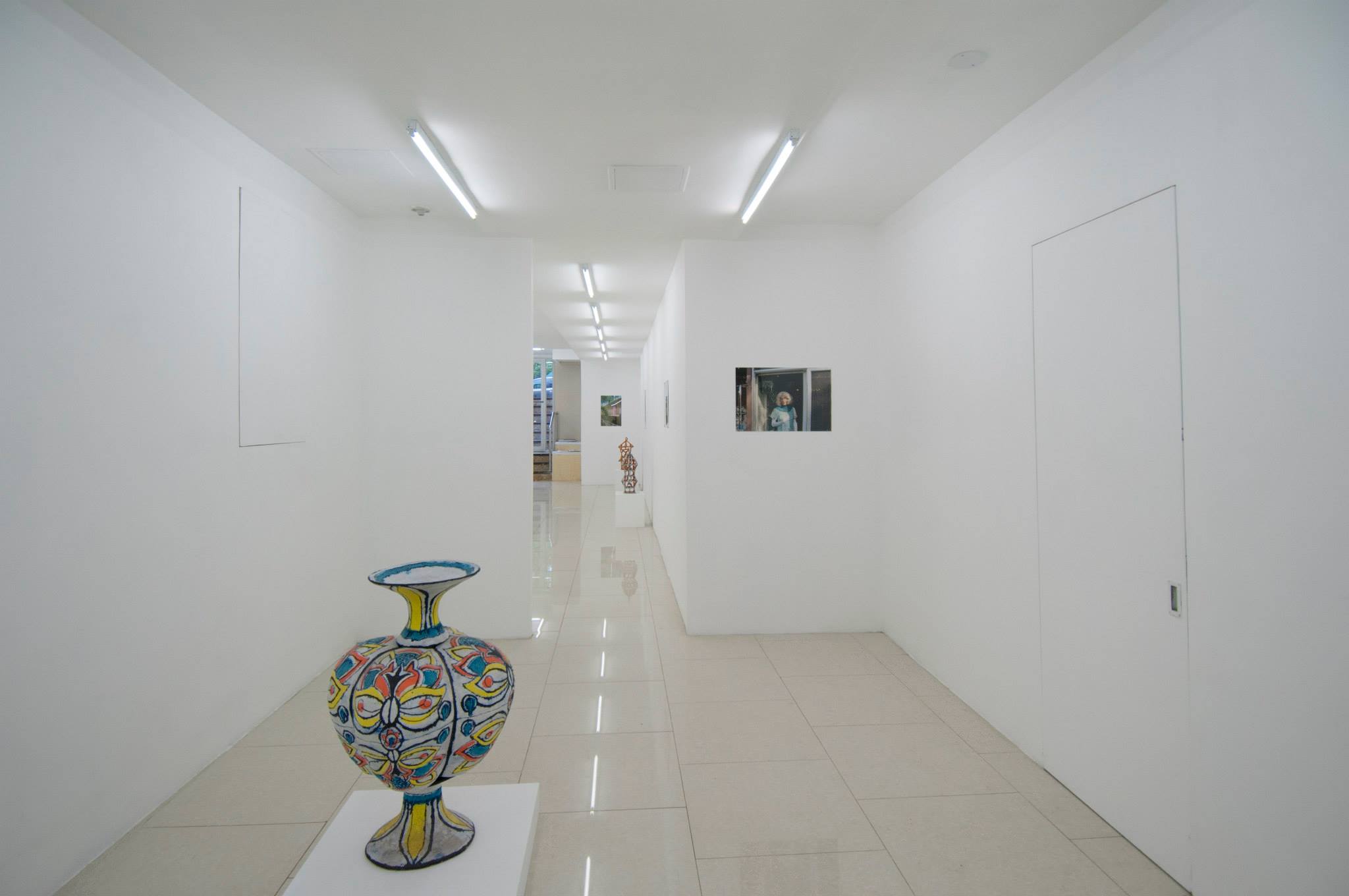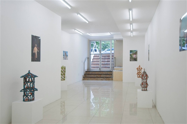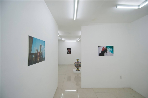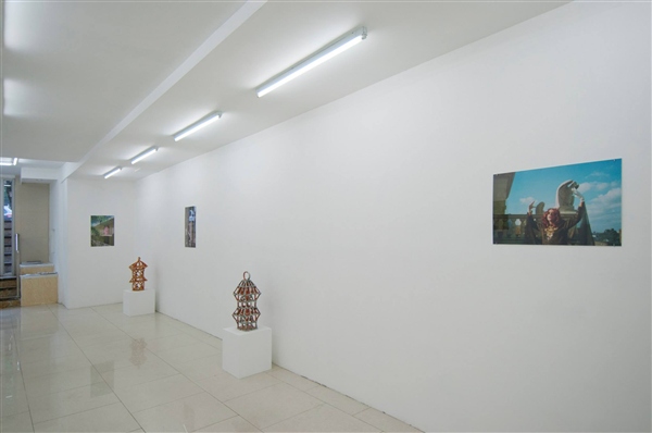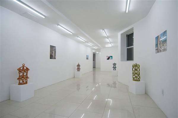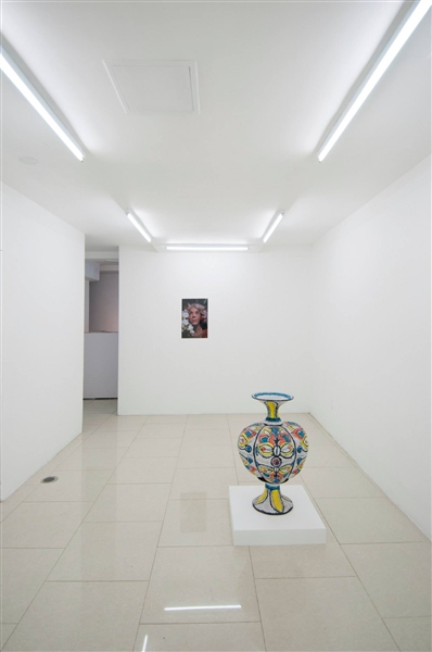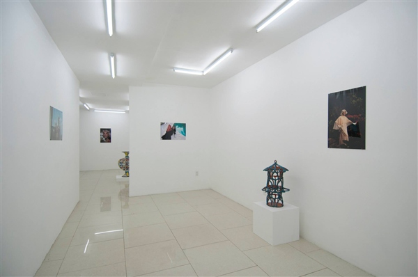 Translucent threads of dawn brings together a selection of Elisabeth Kley's ceramic cages with Conrad Ventur's photographs of the underground film star and performer Mario Montez. Kley's flamboyant, yet menacing cages incorporate a range of ornamental motifs--from Chinese and Persian to the Victorian era. The exuberant sheen of the colored glazes adorns only the outside of each cage leaving the interior with a rough, raw clay surface, creating two visual worlds within one object. While the cage is inherently an object of exclusion, in Kley's cage's interior and exterior are in constant conversation, creating a complex persona that embraces multiple psychologies of space and display. Ventur's intimate portraits of Mario Montez, who starred in seminal films by Jack Smith and Andy Warhol in the 60's, were made after Montez reemerged into the art world after a 35 year hiatus. Staging scenarios with Montez sometimes dressed as past characters from films such as Smith's Flaming Creatures (1963) and others, Ventur's photographs present a fluid approach to archiving the activity of a timeless performer. For Ventur, Montez is "collaborator, drag mother and gay grandfather, all in one," and like the screen-test (a form that Ventur has also worked with), these images portray a subject whose character cannot be confined by a single identity or static image, but will always transcend the medium through their performative spirit.