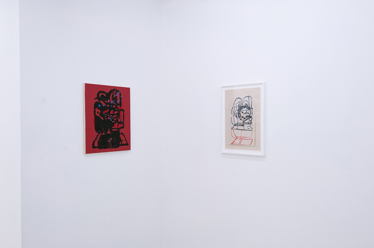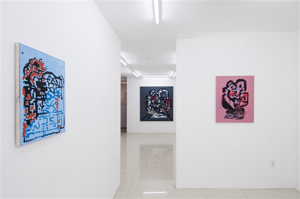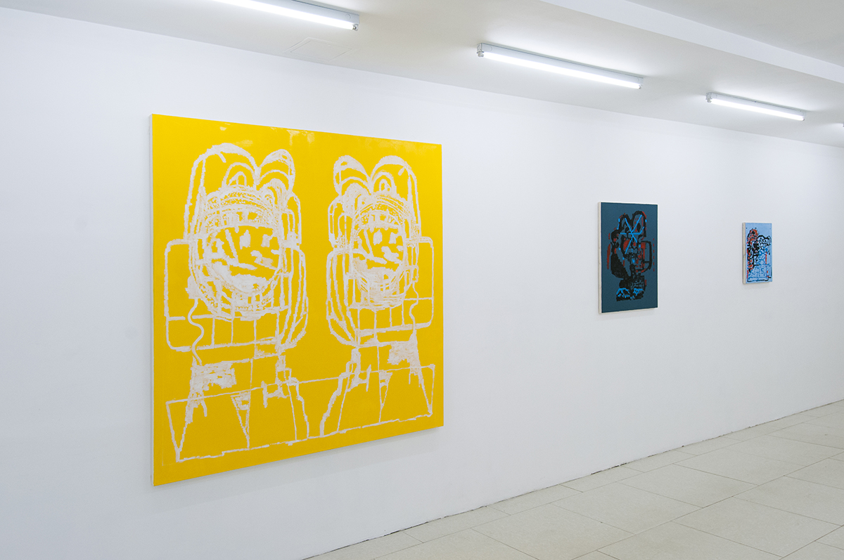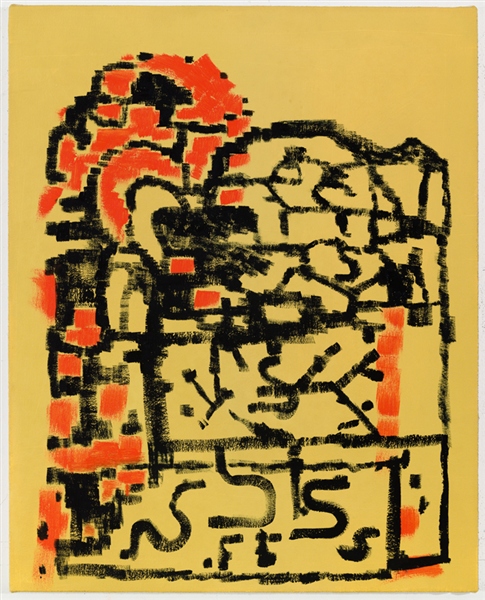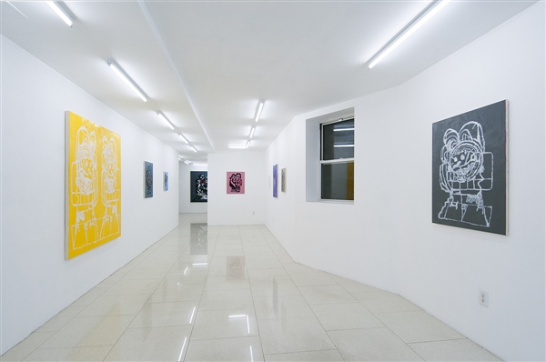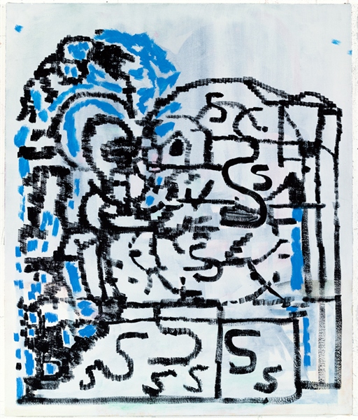 EJ Hauser’s new paintings use bold, rugged gestures to channel a totemic frog figure living in fields of deep, entrancing color. The power of the amphibian to thrive across multiple physical and mythological realms, informs the interconnected acts of drawing and painting in Hauser’s work. As each successive decision absorbs energy and knowledge from preexisting works, Hauser directly addresses the morphology of forms—both linguistic and biological—through "an intertwining of paint, intent and accident." Evolving from the marks and iconography of mountains, figures, numbers, and shields that have appeared in recent work, the amphibian acts as another means for Hauser to suggest the transformative potential of drawing and painting.