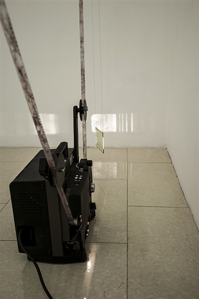 Kate M. Blomquist Window at the Back of the Closet, 2016 Watercolor and wax on 16mm film, projector, glass Dimensions variable