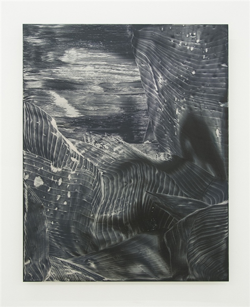 Kate M. Blomquist's paintings embrace the physicality of film with surfaces that recall the sheen of emulsion and the luminosity of a projected image. Pushing layers of paint across aluminum panels with sheets of plastic, Blomquist captures a series of movements that evoke fleeting glimpses of futurist architecture or twilight landscapes. The expansive spaces in Blomquist's work allude to an epic, yet tenuous narrative where filmic behavior is so deeply ingrained in the rituals of daily life that it seeps from everything we do.